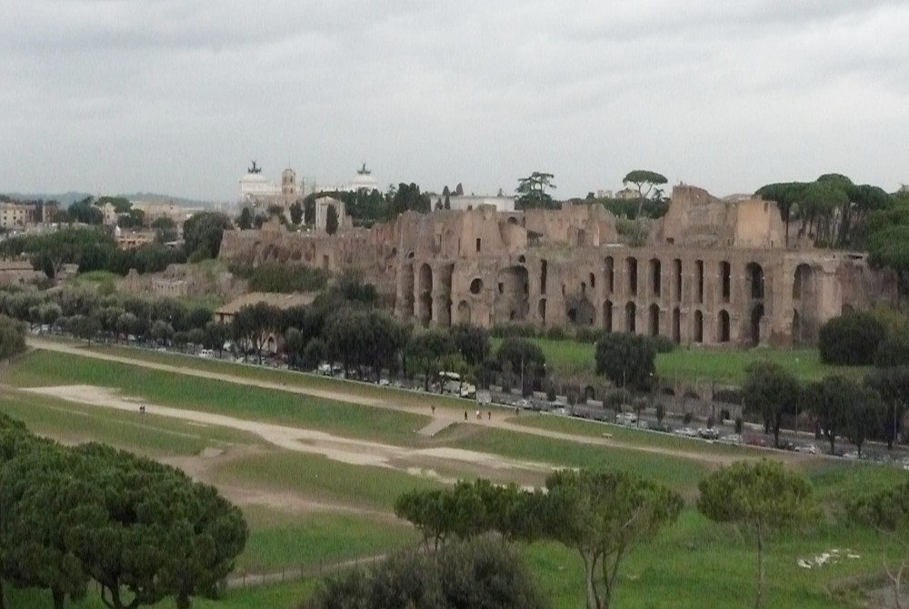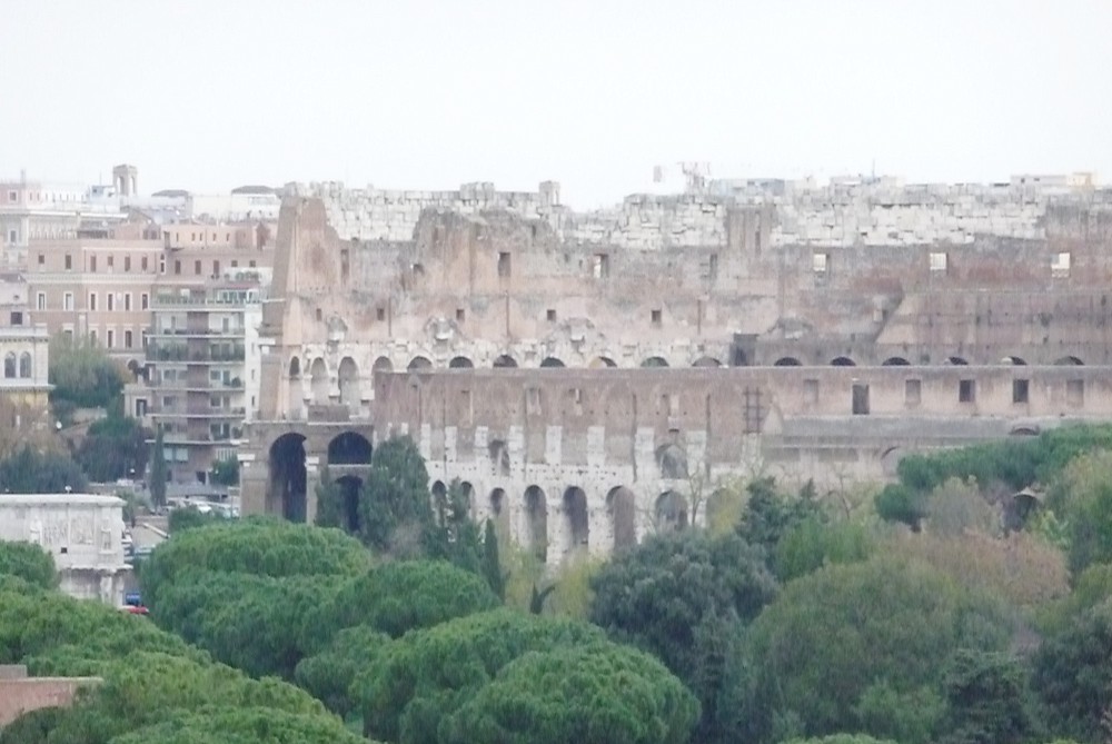The rooftop terrace at the FAO Headquarters provides excellent views of the ancient city of Rome. Left: Forum Romanum, and right: Colosseum.