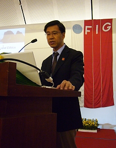 FIG Vice President Teo CheeHai from Malaysia discussing professional ethics and standards in his keynote on the last day of the conference.