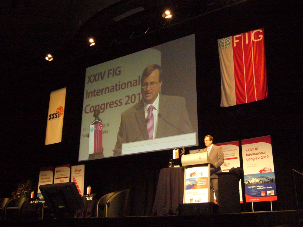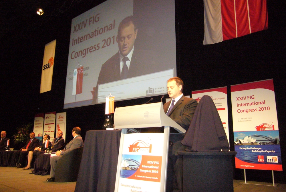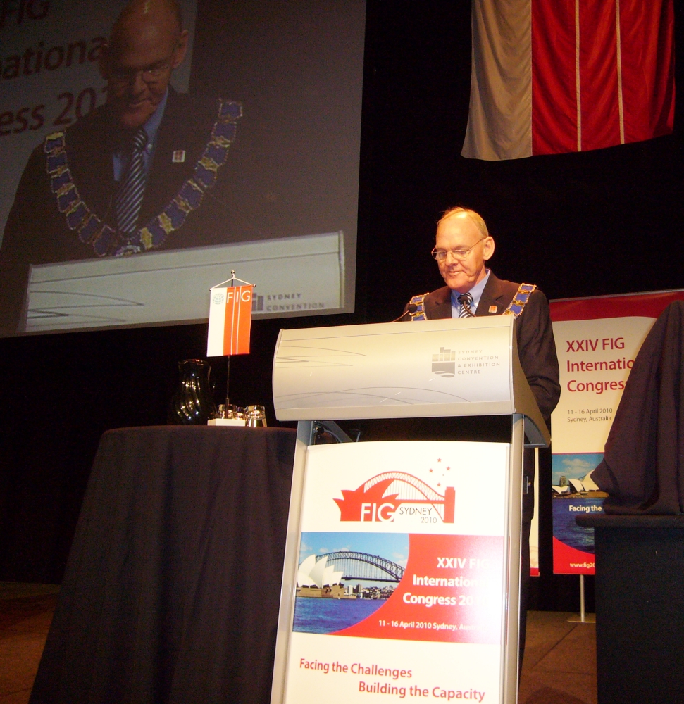 Dr. Marie Bashir making his welcome address at the FIG XXIV