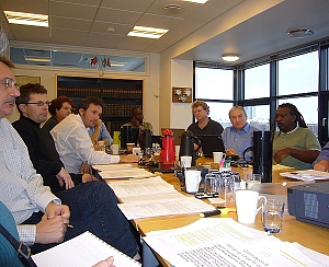 New Commission chairs at the ACCO meeting in the FIG Office together with Vice President Rudolf Staiger (Chair of ACCO) and President Teo.