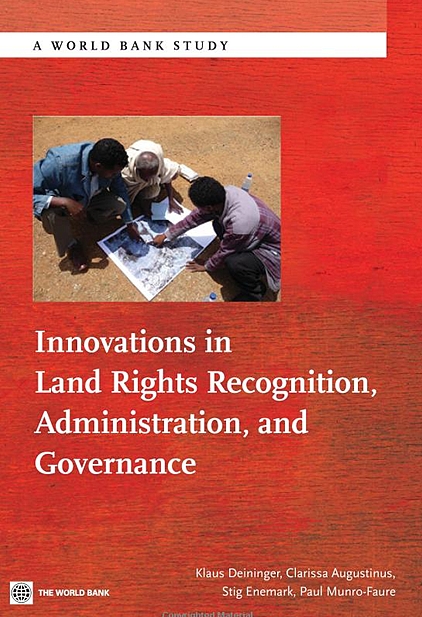 The World Bank has published a book on Innovations in Land Rights Recognition, Administration, and Governance in the World Bank Studies series. The publication is an out come from the FIG/World Bank conference that was held in March 2009. The conference is also covered in the FIG publication no. 45: Land Governance in Support of The Millennium Development Goals - A New Agenda for Land Professionals. http://www.fig.net/pub/figpub/pub45/figpub45.htm