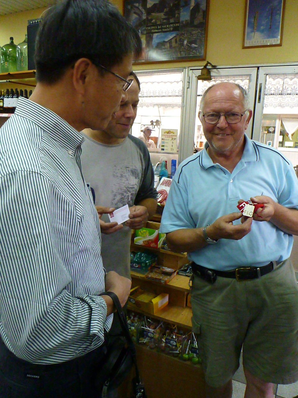 Emilio Areanas and his son receive a FIG Key Ring for their collection from FIG President CheeHai Teo