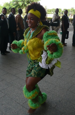 Traditional dancing and drumming outside the Conference Centre gave a lively atmosphere.