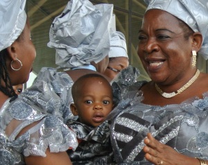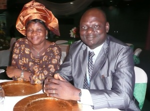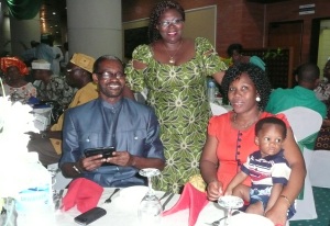 Gene Amako, his wife and son and Angela Kesiena Etuonovbe (green dress).