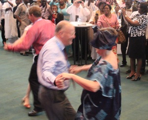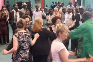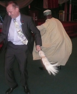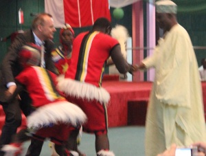Vice President Rudolfs Staiger showing his African dance talent together with NIS president Bode Adeaga and the Nigerian dancers.