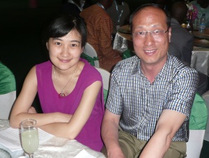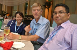 Julie Hyun Sook Lee, Korea ,who is working in the FIG Office for one year enjoys the dinner with John Hannah, and Danilo Antonio.