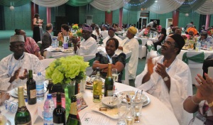 FIG President CheeHai Teo and Minister of Works, Arc. Mike Onolememen enjoy the gala dinner.