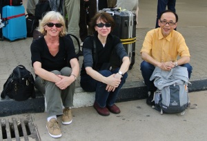...and Ludmiła Pietrzak, Elzbieta Bielecka and Shujiro Nishi waiting for the shuttle bus.