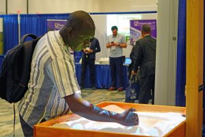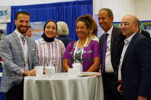 The exhibition was opened by FIG President Diane Dumashie together with NSPS President Robert Akins and CEO Tim Burch right after the first plenary session. The exhibition included both a collection of pictures from the time when Dinesy World was built "Surveying Walt Disney World", a special University Row, the Connect+reflect lounge - a first of its kind FIG Working Week initiative being a safe space for conference attendees to seek individual support, share diverse stories and build the basis for a sustainable workforce. Informal and interactive sessions were hosted throughout the working week covering topics spanning mental health, podcasting, coaching, yoga and meditation, building your business, what is inclusion and building your brand. The FSMS stand included a "sand box" that opened up for creativity.