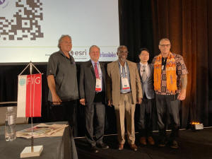 Each morning of the three conference days started with a plenary session with nothing else in parallel to set the scene of the day. FIG Council and the local organisers had decided that this Working Week should be an "in-person event" with focus on the physical attendance and the advantages of this such as networking and being together. However, due to the fact that she did not get visa to attend, the very first plenary speaker, Clarissa Augustinus, UNCCD, had to prepare a video presentation that was shown. Not the best start of the conference, but was soon forgotten by the splendid presentation on the Global land trends and future scenarios and the role of surveyors in protecting our planet. Clarissa is co-chairing the new FIG Task Force on Climate Compass. The other two speakers in this plenary session, Victoria Stanley, World Bank and Brent Jones, Esri were physically present and both made remarkable presentations under the headline of "Protecting our World" in which especially the relationship between climate change and sustainable development was on the agenda. "Humans are problem solvers... but there is more to do" said Brent Jones. The session ended with a round of good and tough questions from the audience which kept the speakers busy.
