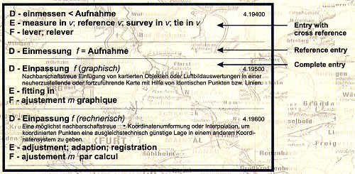 • the Dictionary Tern and Definitions as used in Surveying and Mapping in Germany with Equivalent Technical Terms in English and French
