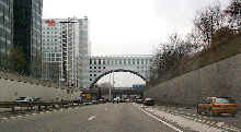 Figure 1: A situation in which defining right of property in 2D is complex: a road, bridge and a building on top of each other, all with different