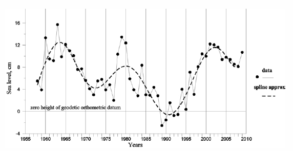 Vigo, I., Garcial, D., Chao, B. F., 2005, Change of sea level trend in the