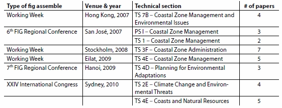 coastal zone, with much of the initial evidence drawn from the FIG Working Week
