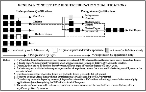 Figure 1 - Distinguishes between undergraduate and post-graduate qualifications and outlines a general concept for the Bologna Agreement, modelled on the existing Irish situation. Some national professional associations in western and central Europe are beginning to perceive the Bologna Agreement as a threat to the high quality of their existing qualifications at MSc. level, and the high standard required for membership. This feeling is compounded by the EU's notion that a professional is someone with a 'BAC + 3' qualification, when the reality is something quite different. The introduction of many bachelor degrees will generate a lively debate on what practically constitutes a professional. An investigation in this regard in Belgium is suggesting that the technical grade in surveying will comprise graduates with bachelor degrees and the professional grade will comprise graduates with master's degrees. The debate on the issue of what constitutes a professional is of prime importance, and should be discussed by national and pan European professional associations as a matter of urgency. I would suggest that a threshold of four or five years most likely at master's degree level might be the most appropriate for geodetic surveying. It is very important that academic institutions firstly communicate with industry and the national professional associations before any bachelor degrees are introduced. We do not want to have a situation whereby academic institutions are producing graduates on the false assumption that a bachelor degree will qualify the graduates for membership of national associations or access to appointments which were previously reserved for graduates with master's degrees. The European Commission carried out a review of the Sectoral and General Directives during the latter half of 2000 due to a perception that little progress has been made implementing procedures for mutual recognition of qualifications since the Directives were introduced. The adoption of the Commission communication on the future of the mutual recognition of professional qualifications has now been put back to spring 2001, however sources suggest that the Commission does not envisage proposing any change in the 'BAC + 3' threshold at this time. ConclusionsThe primary objective of the Bologna Agreement was to establish and promote the European system of higher education world-wide. This will only be successful if the basic underlying principles for education promoted in Europe are of a sufficiently high standard. There is a danger that the BAC + 3 threshold set by the EU is too low as a basic professional qualification and that the quality of existing European qualifications will be eroded, thus hindering the overall objective of the European Ministers of Education. CLGE has identified the need for a high level education, preferably a master's degree for European geodetic surveyors, which should be broad based to undergraduate level, and specialisation should only be introduced at post-graduate level. Curricula should contain a significant element of measurement science supporting a substantial understanding of land administration management and geographic information management. While it has not been possible for CLGE to produce a core syllabus, as was originally intended, we believe that we have made a significant contribution in highlighting some of the important issues, along with funding research to increase our knowledge in some areas. Curricula must be flexible to provide the skills necessary for a rapidly changing marketplace, but overall guiding principles and policies are necessary to ensure graduates have the competencies to solve the challenges they will meet in their careers. CLGE does not consider this report to be the final answer, but only the beginning of a process to investigate and debate these issues more widely, and to provide us with the knowledge to allow us choose good policies for the future of our profession. I suggest that the issues of "Educational Reform due to the Bologna Agreement" and "What constitutes a professional" are the next most important issues requiring investigation and debate for geodetic surveyors in Europe. ReferencesAllan, A. (1995): The Education and Practice of the Geodetic Surveyor in